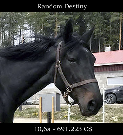 Random Destiny on syntynyt 2007 USAssa. Tamma kilpaili 2- ja 3-vuotiaana hienolla menestyksellä, kuten ansiot starttia kohden 26.686$ kertovat.